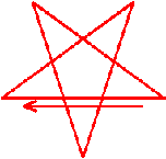 [На этот раз пройдите четверть круга. Пентаграмма изображается из нижнего угла против часовой стрелки, в верхний правый угол и так далее].